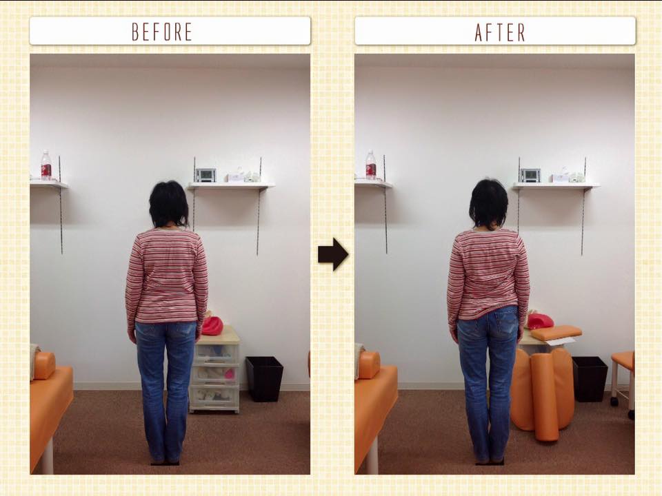 AFTERでは右肩の下がりが真っ直ぐになっています☆